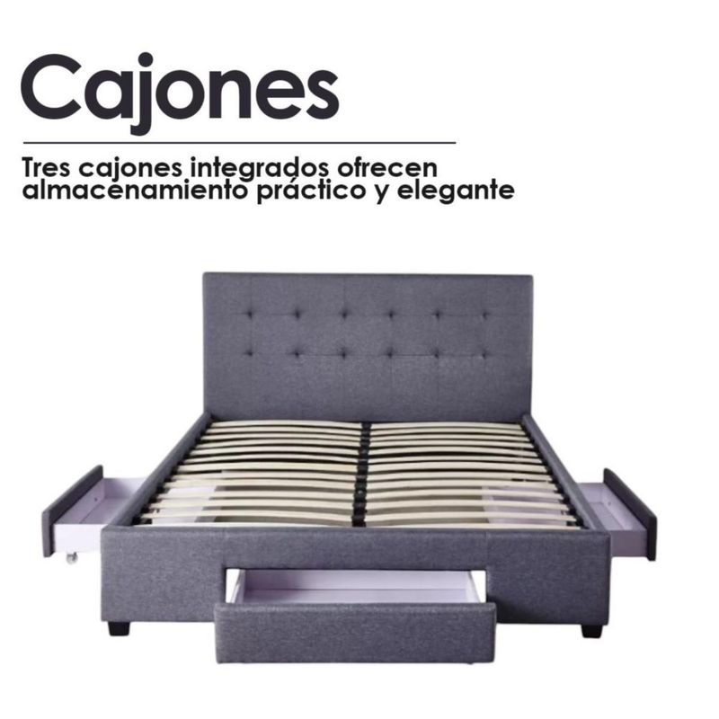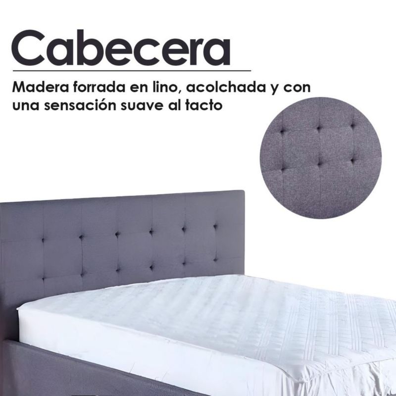 Ilios Innova | Base de cama Matrimonial con cajones y Cabecera Tapizada en Lino.