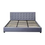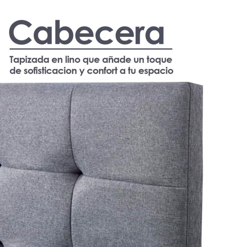 Ilios Innova | Base de Cama Matrimonial de Madera con Cabecera Tapizada en Lino Gris. Moderna y Elegante para Renovar tu Recámara.