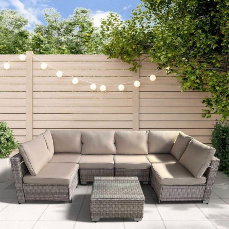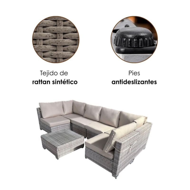 Ilios Innova | Juego de Sala para jardín para seis personas Fabricada en Mimbre sintético