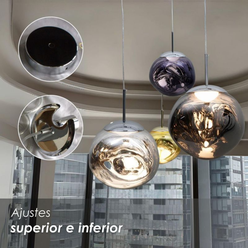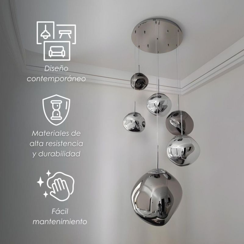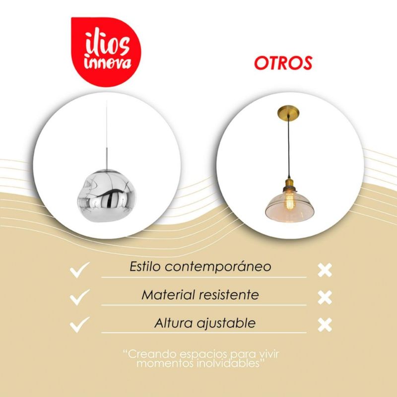 Ilios Innova | Lámpara Colgante Lava Metal Cromado 28cm, Altura Ajustable