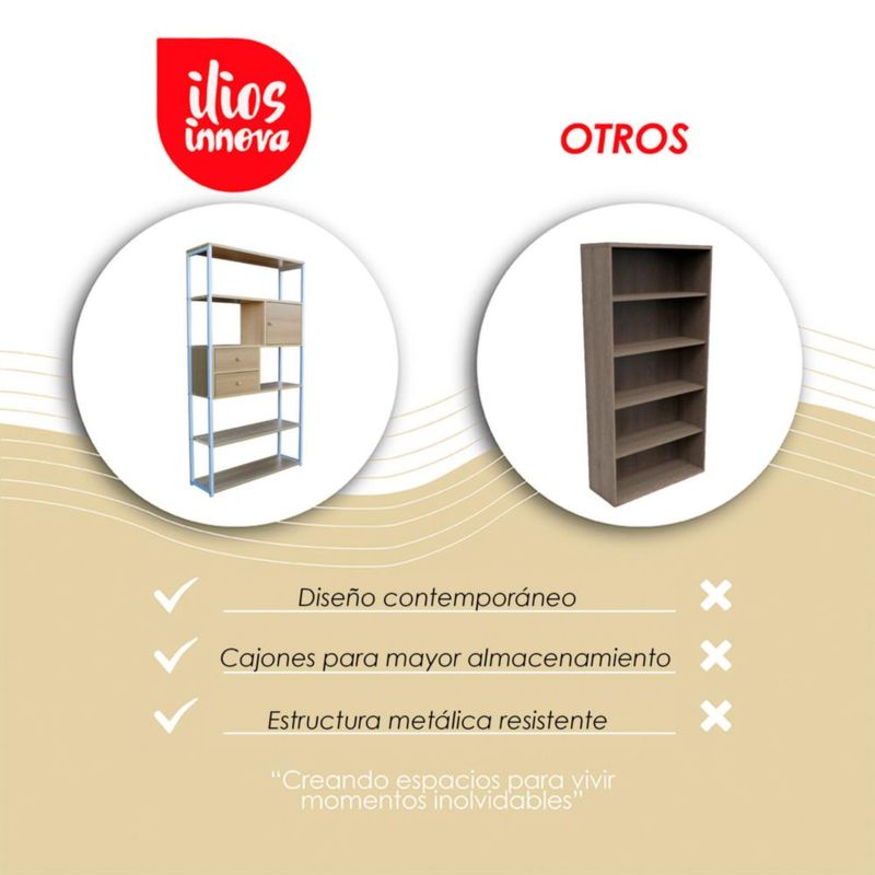MueblesOficinaLibreros y EstantesIlios Innova | Librero Organizador Contemporáneo para Oficina y Hogar, Diseño Moderno en Acero y Melamina Maple