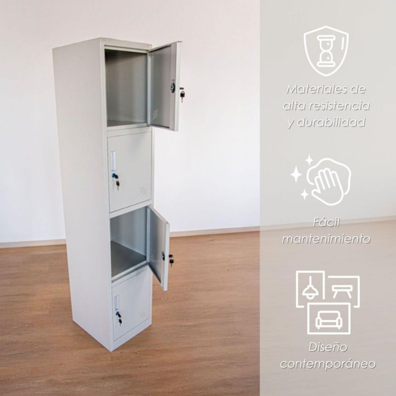 Ilios Innova | Locker Metálico 4 Espacios Gris con Llave individual