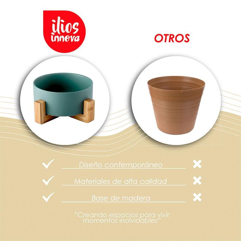 Ilios Innova | Maceta decorativa de cerámica color verde con base de madera