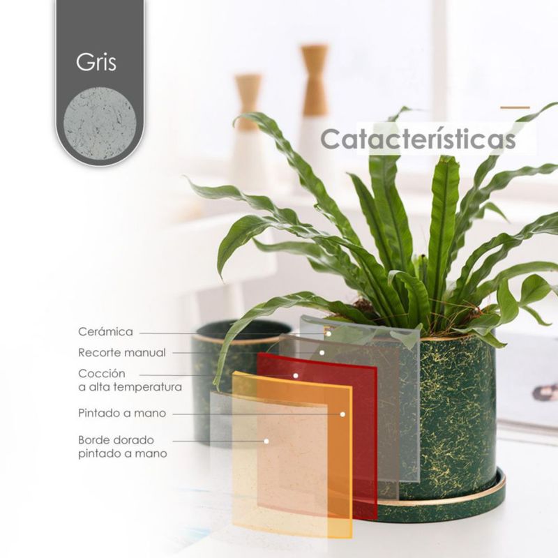 Ilios Innova | Macetero borde dorado 18 cm alto, maceta de cerámica con plato de base, Elegante maceta para flores