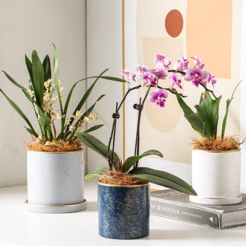HogarDecoraciónMacetasIlios Innova | Macetero borde dorado 18 cm alto, maceta de cerámica con plato de base, Elegante maceta para flores