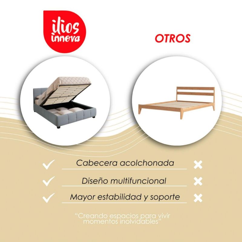 Ilios Innova | Base de Cama con Cabecera King Size y Sistema Hidráulico para Almacenamiento con Estructura de Madera con Tapizado en Lino color Azul.