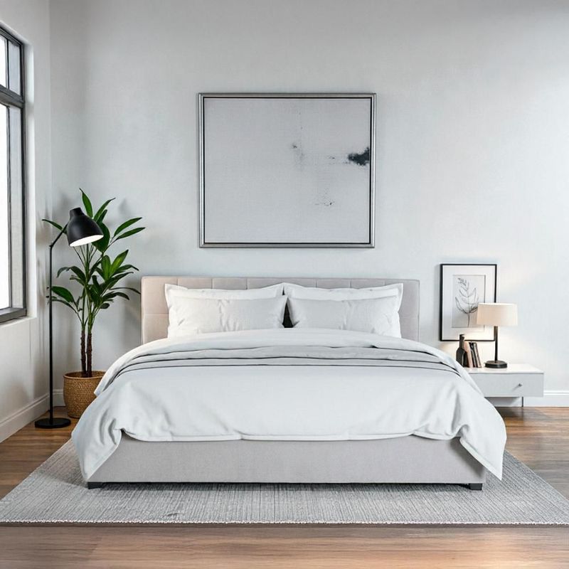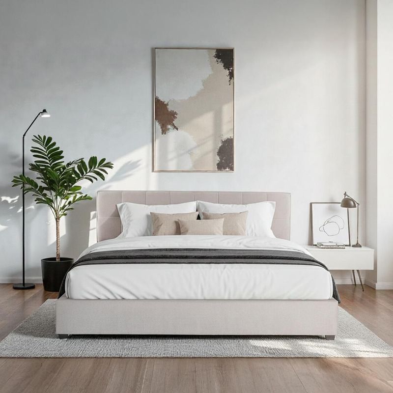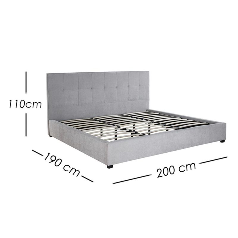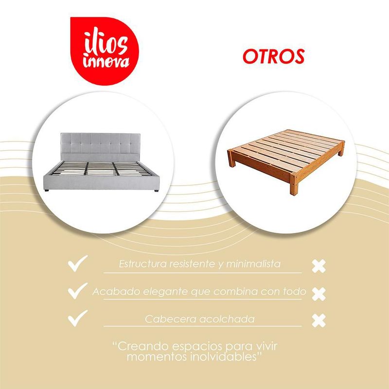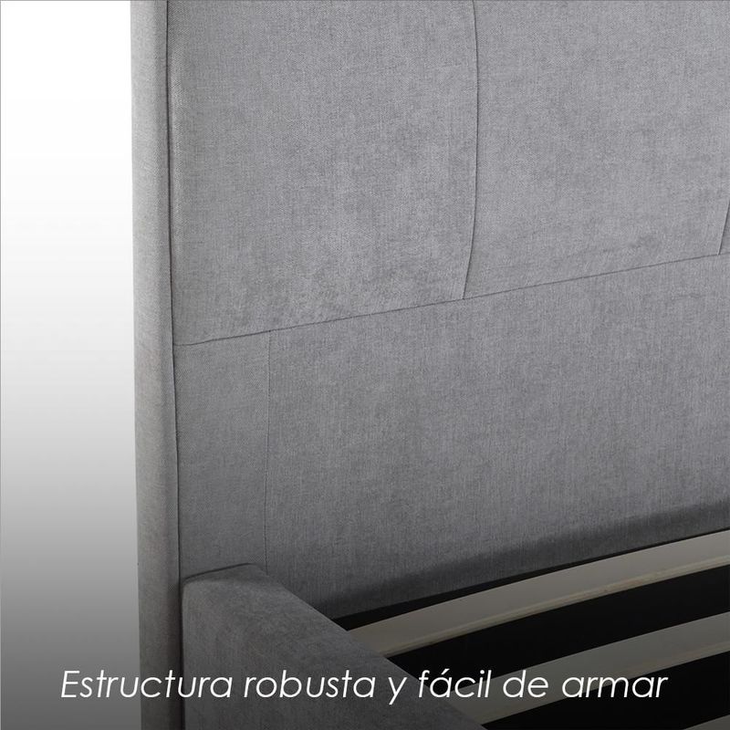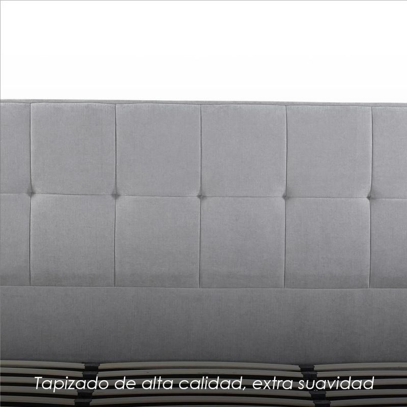 MueblesRecámaraCamasIlios Innova | Base de Cama King Size Tapizada en Tela Gris con Cabecera Capitoneada, Estructura de Madera y Somier de Tablillas Resistentes