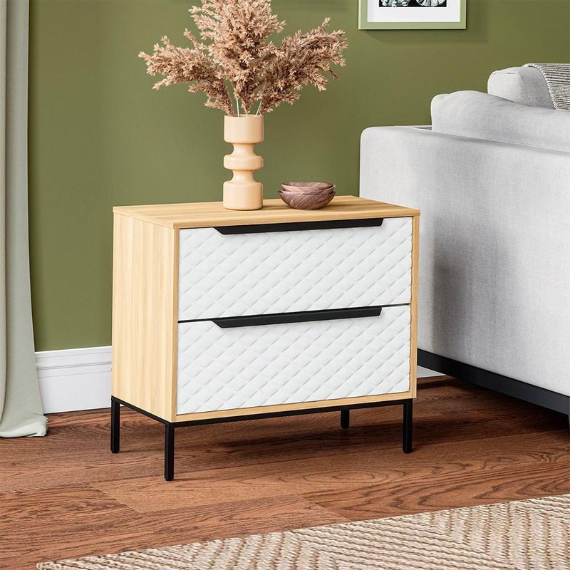 MueblesRecámaraBurósIlios Innova | Buró Cajonera Moderna con 2 Cajones Blancos, Estructura de Acero y MDF, Mesa para Recámara, Oficina o Sala, Diseño Nórdico Funcional.
