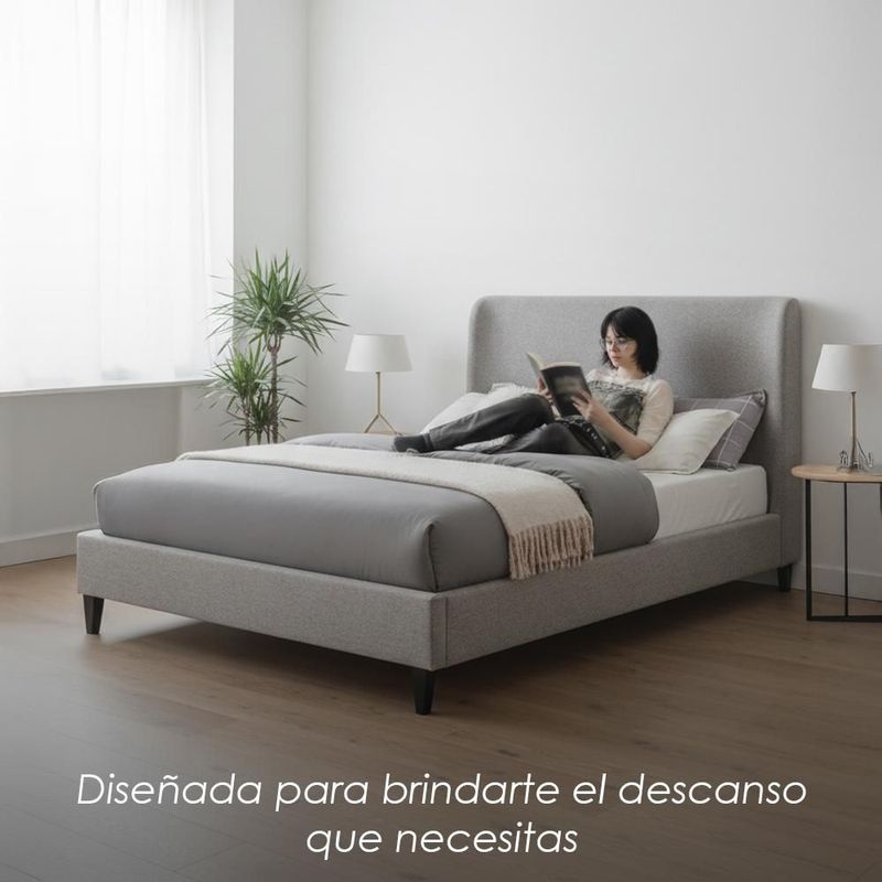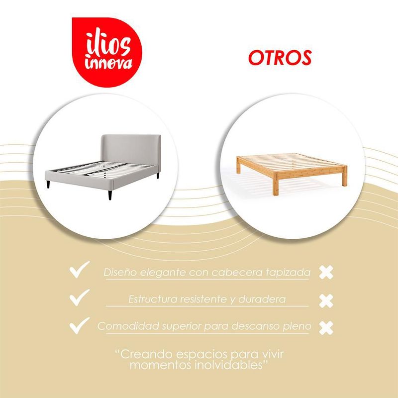 MueblesRecámaraCamasIlios Innova | Cama Queen Size Gris con Cabecera Tapizada en Lino y Poliéster. Estructura de Madera Resistente. Diseño Elegante y Cómodo.