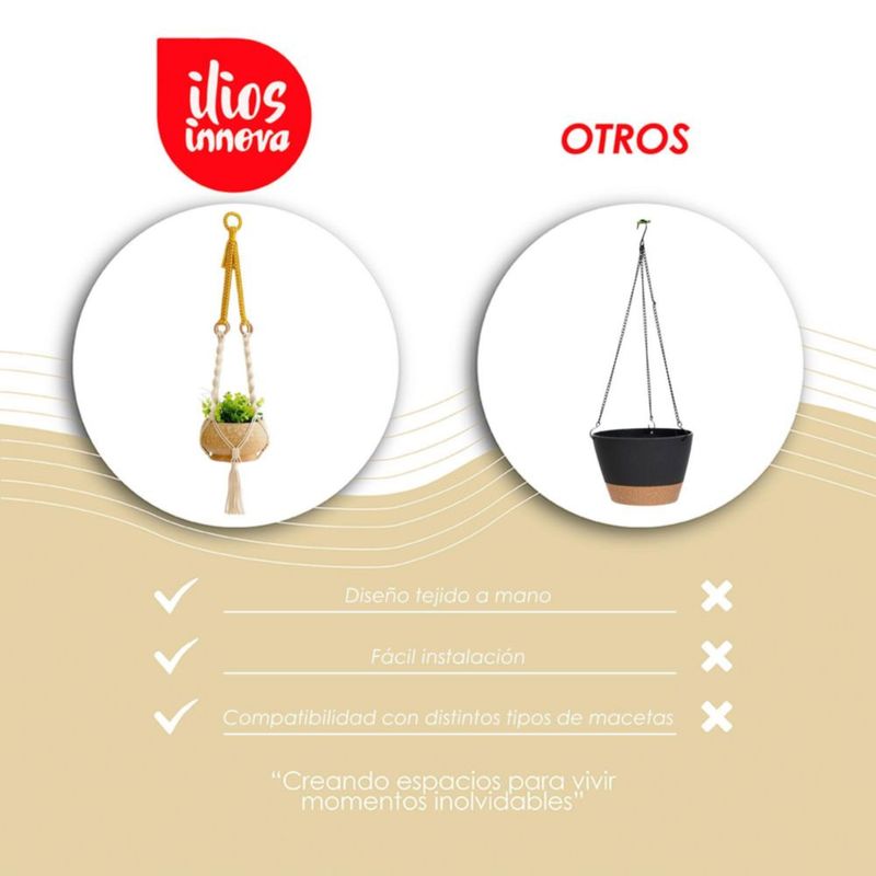 Ilios Innova | Colgante Decorativo Boho Beige para Maceta, soporte artesanal tejido a mano, decoración colgante para plantas de interior y exterior.