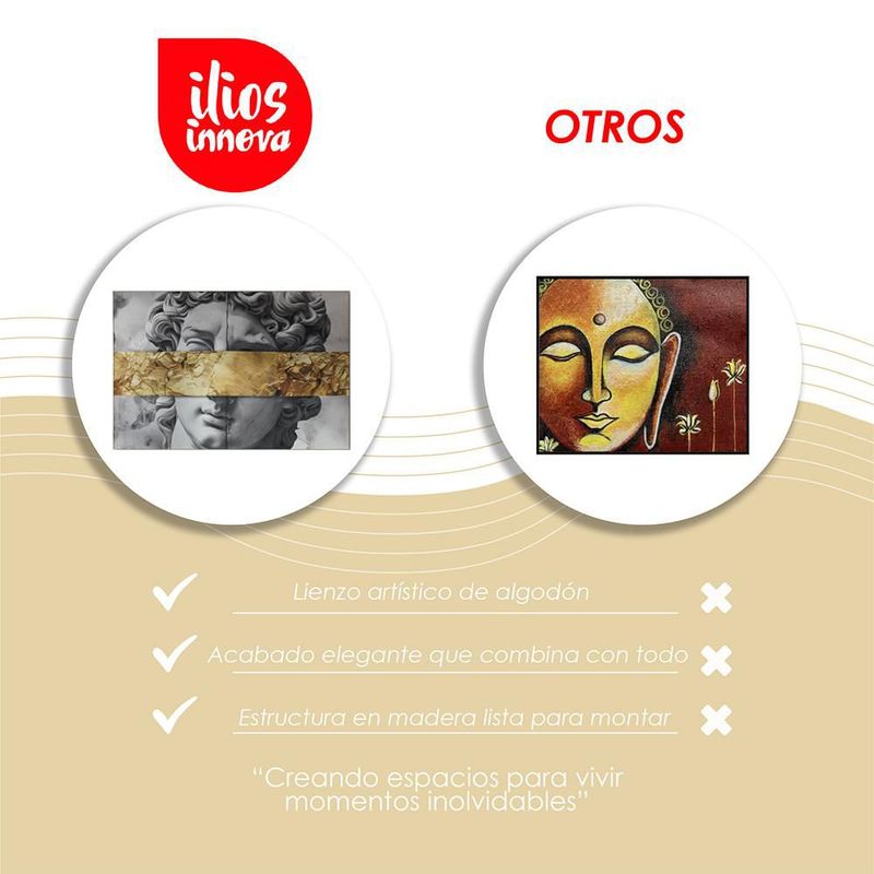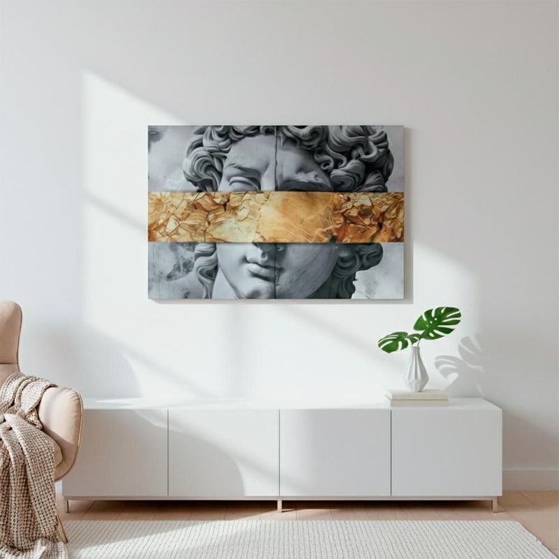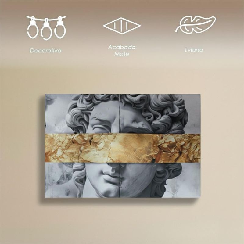 Ilios Innova | Cuadro Decorativo Moderno Estatua David con Banda Dorada Efecto Textura, Arte Clásico Pop para Sala, Recámara, Oficina.