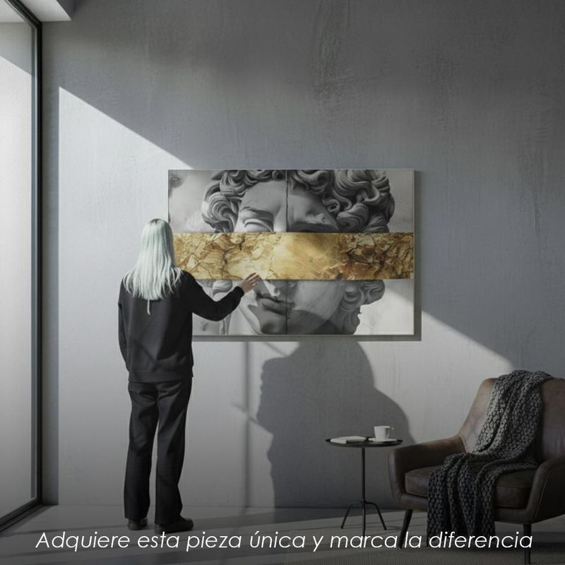 HogarDecoraciónCuadrosIlios Innova | Cuadro Decorativo Moderno Estatua David con Banda Dorada Efecto Textura, Arte Clásico Pop para Sala, Recámara, Oficina.