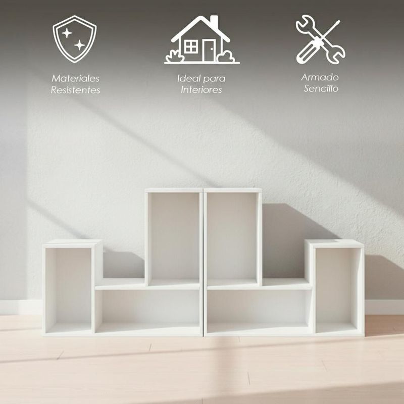 Ilios Innova | Kit de 2 Libreros Modulares de 3 Cubos, Estante Organizador Versátil, Color Blanco, Múltiples Configuraciones.