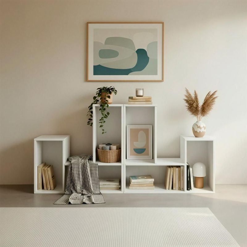 MueblesOficinaLibreros y EstantesIlios Innova | Kit de 2 Libreros Modulares de 3 Cubos, Estante Organizador Versátil, Color Blanco, Múltiples Configuraciones.