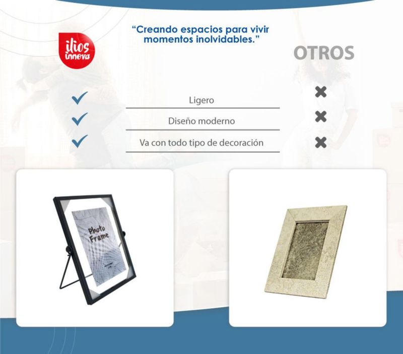 Ilios Innova | Kit De 3 Portarretratos Metálicos Color Negro.