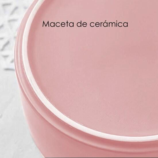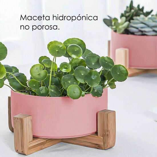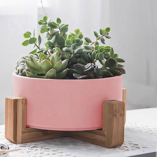 HogarDecoraciónMacetasIlios Innova | Macetero Con Soporte De Madera Mediano Color Rosa, Maceta De Cerámica y Soporte De Bambú