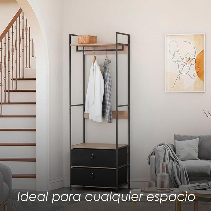 MueblesRecámaraClosets y ArmariosIlios Innova | Perchero Industrial con Entrepaños y Cajonera. Closet Moderno y Organizador de Ropa, Estructura Metálica y Superficies de MDF.