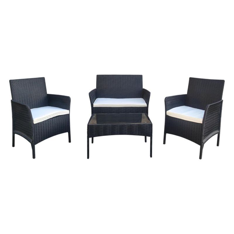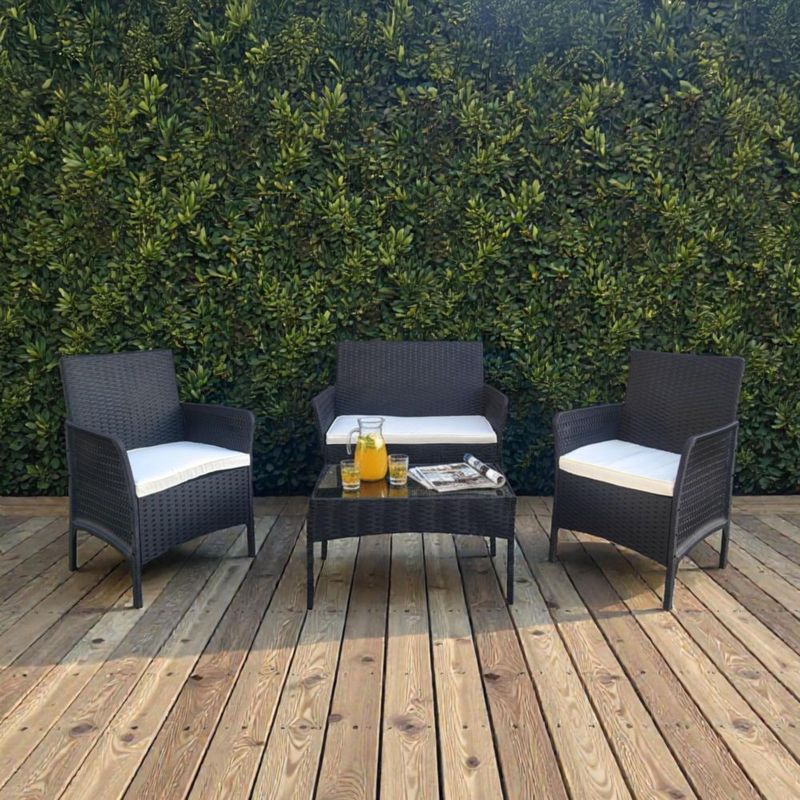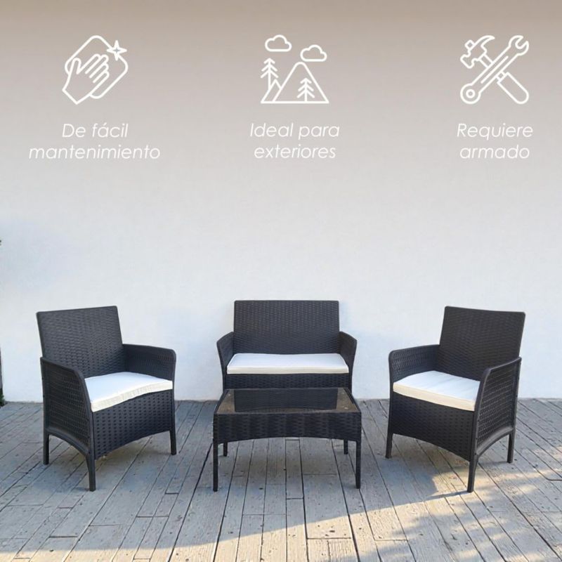 HogarPatio y JardínSetsIlios Innova | Sala de Jardín para Exterior 4 Piezas, Set de Muebles para Terraza y Patio con Textura tipo Ratán, Incluye Mesa de Centro y Cojines