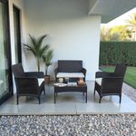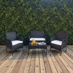 Ilios Innova | Sala de Jardín para Exterior 4 Piezas, Set de Muebles para Terraza y Patio con Textura tipo Ratán, Incluye Mesa de Centro y Cojines