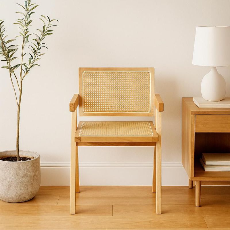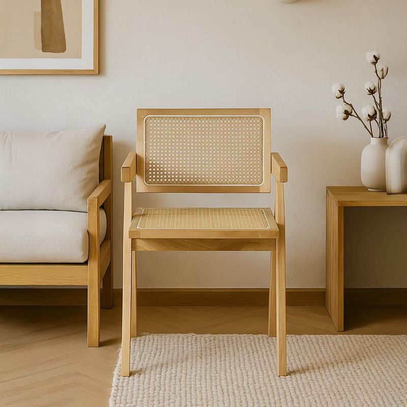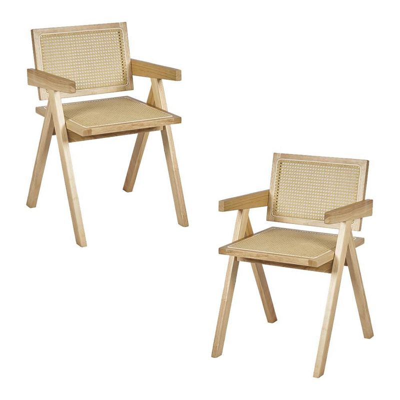 MueblesComedores y AntecomedoresSillas y BancosIlios Innova | Set de 2 Sillas Jean de madera y ratán sintético color natural con respaldo y asiento trenzado, para comedor, sala u oficina.
