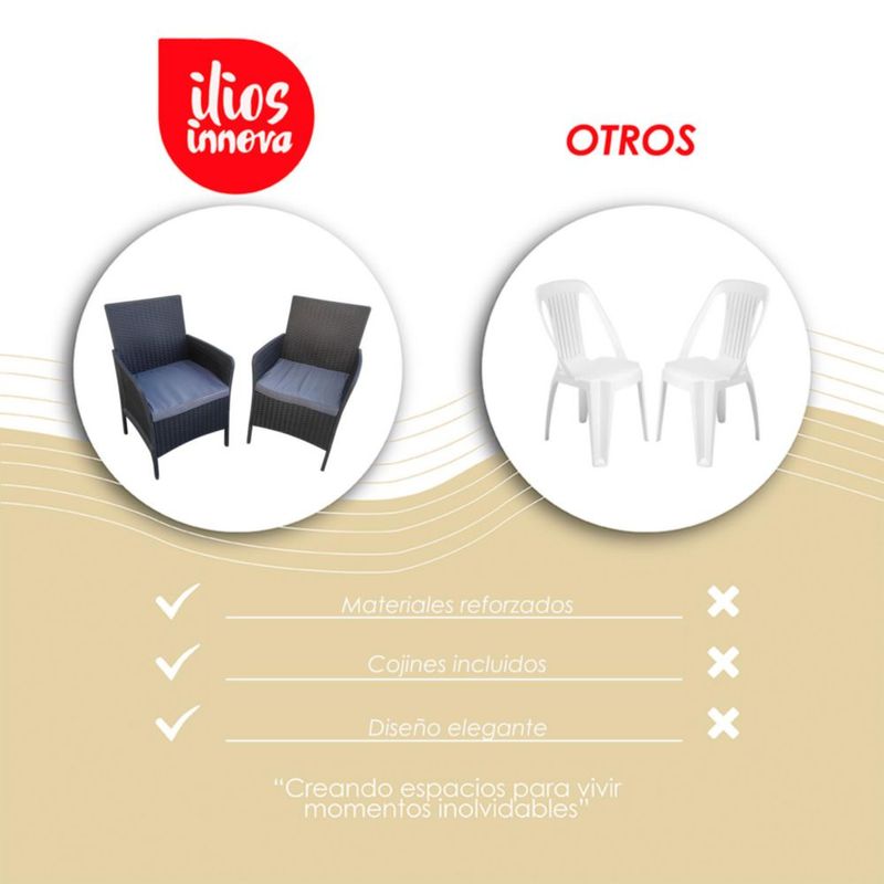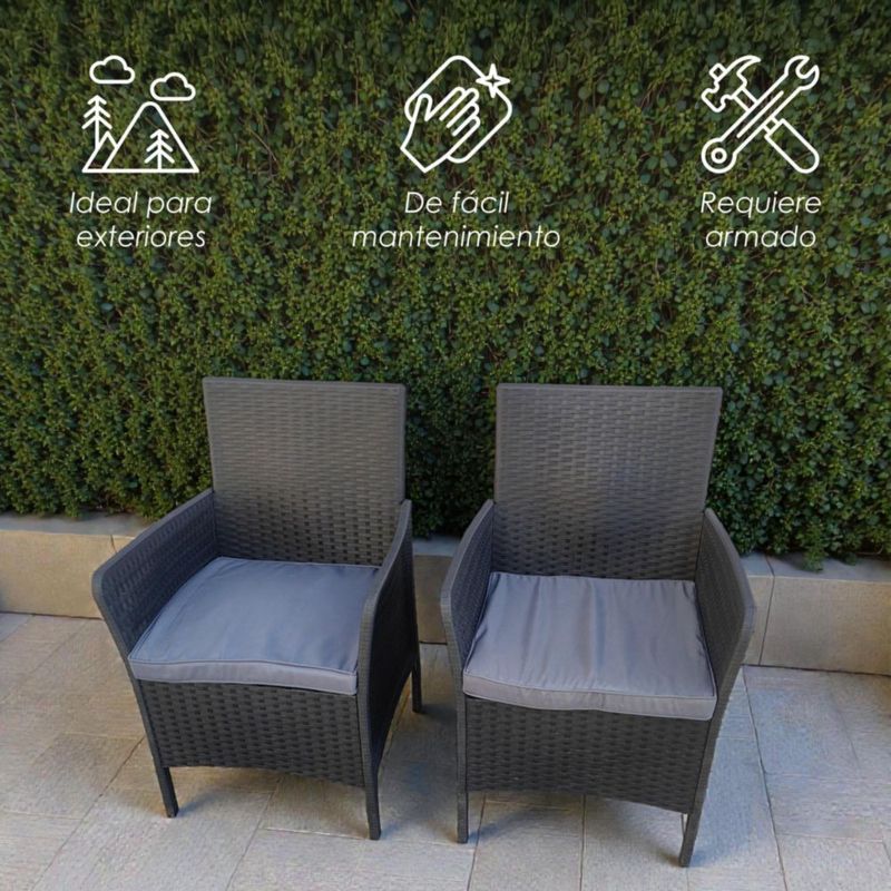 HogarPatio y JardínSillas, Sillones, Bancos y SofásIlios Innova | Set de 2 Sillas para Comedor Exterior Textura Ratán, Sillones de Jardín Resistentes con Cojines Lavables, Ideales para Terraza y Patio