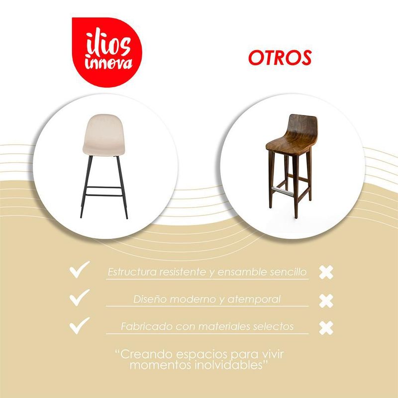MueblesComedores y AntecomedoresSillas y BancosIlios Innova | Set de 4 Sillas Altas de Bar Candina Beige con Estructura Metálica Negra. Diseño Moderno y Elegante para Cocina, Comedor o Restaurante
