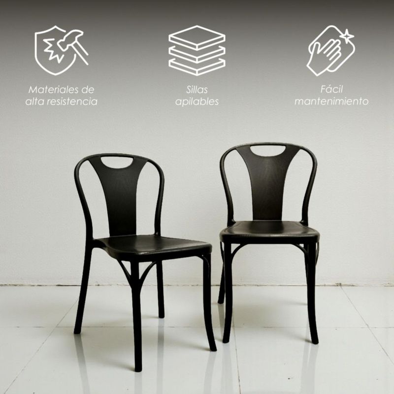 Ilios Innova | Set de 4 Sillas Bitsrot de Polipropileno Negro, Diseño Minimalista, Apilables, Resistentes para Comedor, Jardín, Restaurante, Cafetería