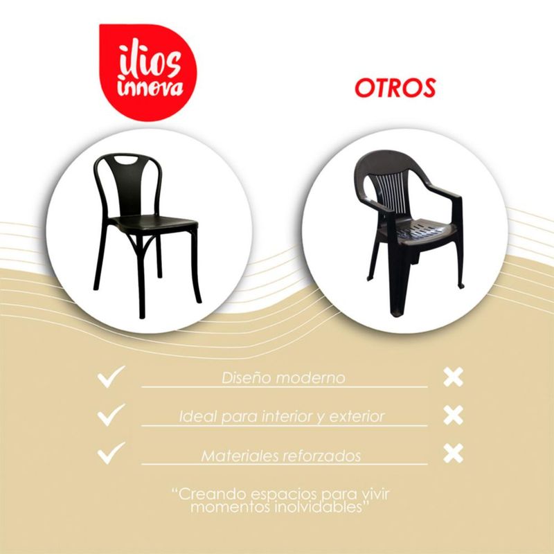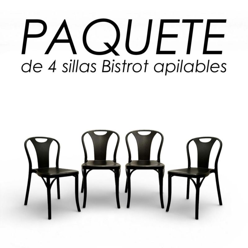MueblesComedores y AntecomedoresSillas y BancosIlios Innova | Set de 4 Sillas Bitsrot de Polipropileno Negro, Diseño Minimalista, Apilables, Resistentes para Comedor, Jardín, Restaurante, Cafetería