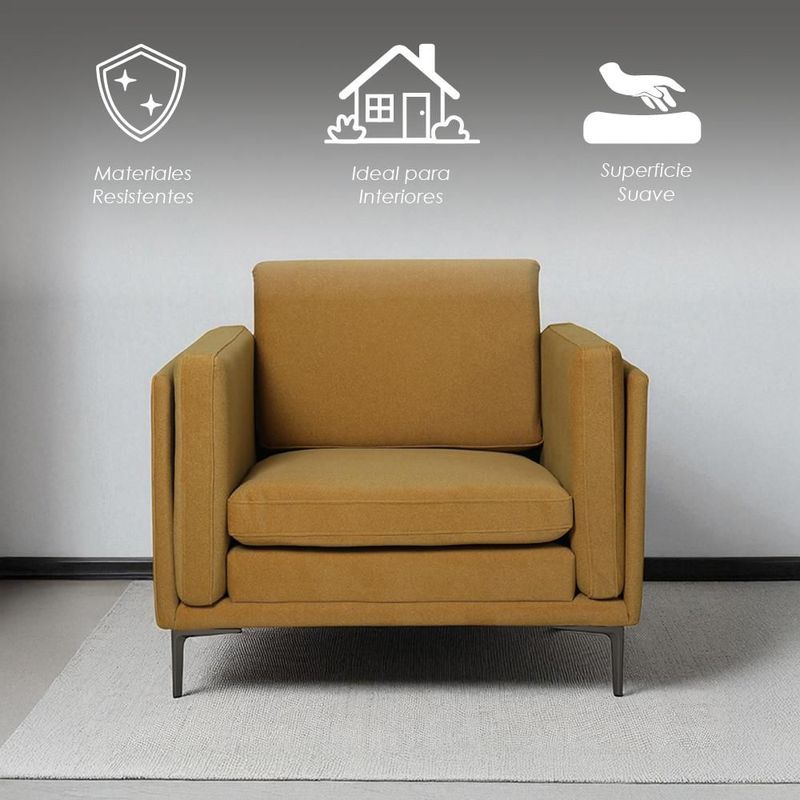 MueblesSalaSillones y SofásIlios Innova | Sillón Berlín Mostaza Individual Moderno con Estructura de Madera, Tapizado Premium y Patas Metálicas, Diseño Elegante y Confortable.