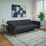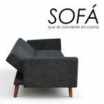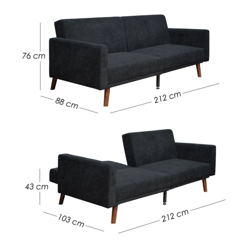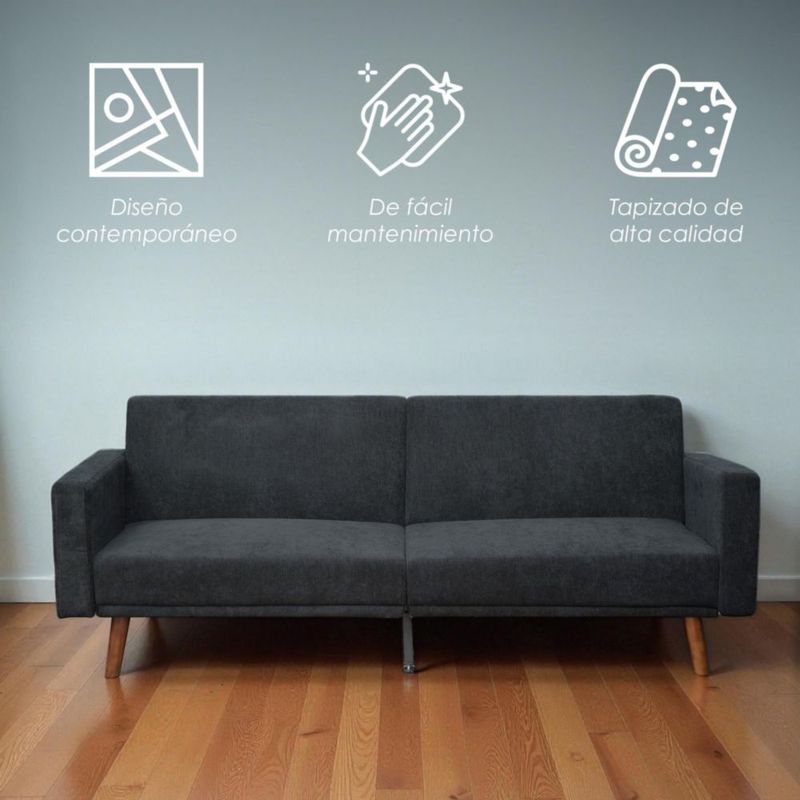 Ilios Innova | Sofá Cama Aren Tapizado en Lino Negro Diseño Nórdico con Respaldo Dividido Reclinable Brazos y Estructura de Madera para Sala de Estar
