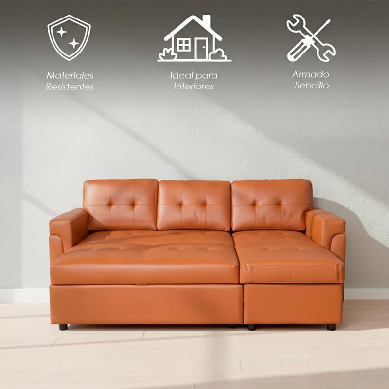 Ilios Innova | Sofá Cama Kairo Café de Cuero Sintético, Chaise Longue/Cama Extraíble, 3 Plazas, Estructura de Madera, Funcional y Moderno.