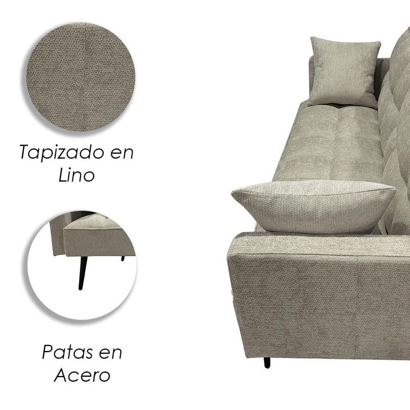 Ilios Innova | Sofá Cama Zen Gris Moderno Tapizado Premium con Respaldo Reclinable Dividido Patas Metálicas y 2 Cojines Decorativos.