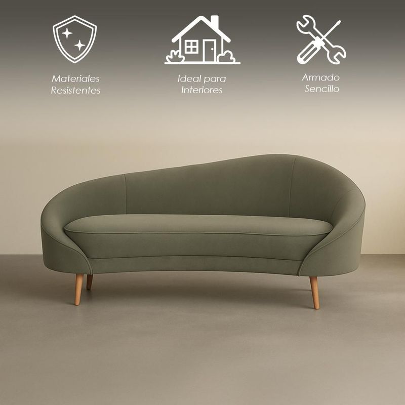 MueblesSalaSillones y SofásIlios Innova | Sofá de 3 Plazas Curvo Querétaro Verde con Diseño Orgánico, Tapizado Alta Calidad Acolchado Grueso y Patas de Madera para Sala Moderna