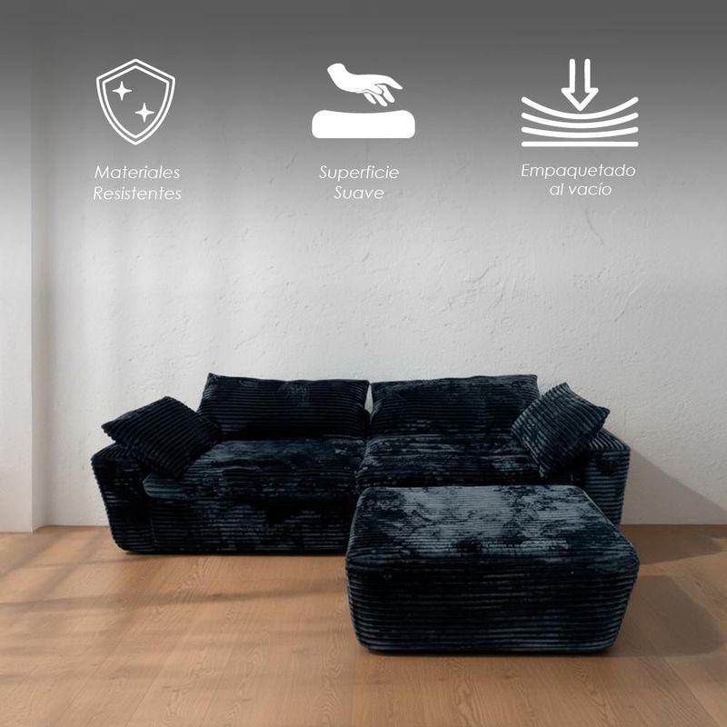 Ilios Innova | Sofá Modular Bolonia Negro de 3 Módulos, Estructura Comprimida con Espuma Alta Densidad y Pana Premium, Reconfigurable, Sala Moderna.
