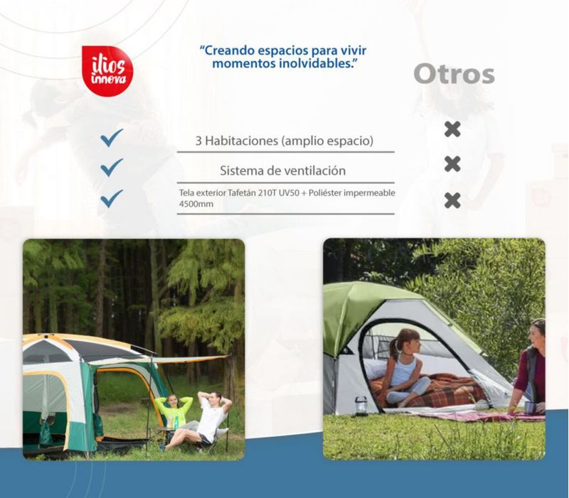 Ilios Innova | Tienda De Campaña Familiar Mediana Color Café. Ideal para actividades al aire libre.