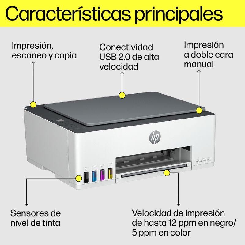 CómputoImpresión y scannersImpresorasImpresora Multifuncional HP Smart Tank 520