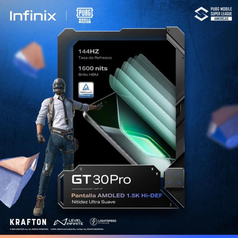 TelefoníaCelularesSmartphonesINFINIX GT 30 Pro 5G Gris 256GB 12+12GB RAM expandible 144 Hz 6.78" 1.5K+AMOLED