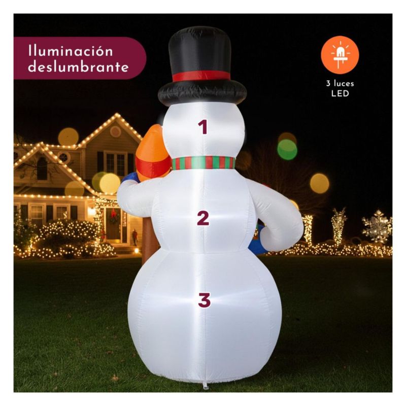 Inflable Navidad Muñeco de Nieve Gigante 2.7m con Luz LED para Exterior Decoracion Navideña Jardin Patio Casa Modelo Jardimex Resistente