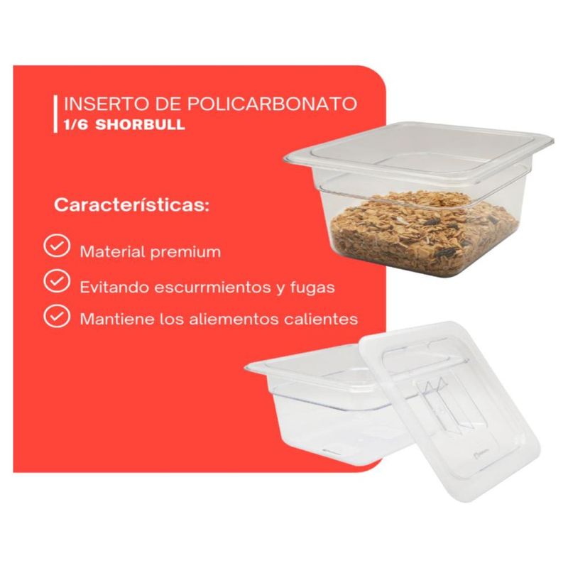 HogarCocinaBanquetesInserto Policarbonato Sexto 1/6 con Tapa 10 cm Shorbull