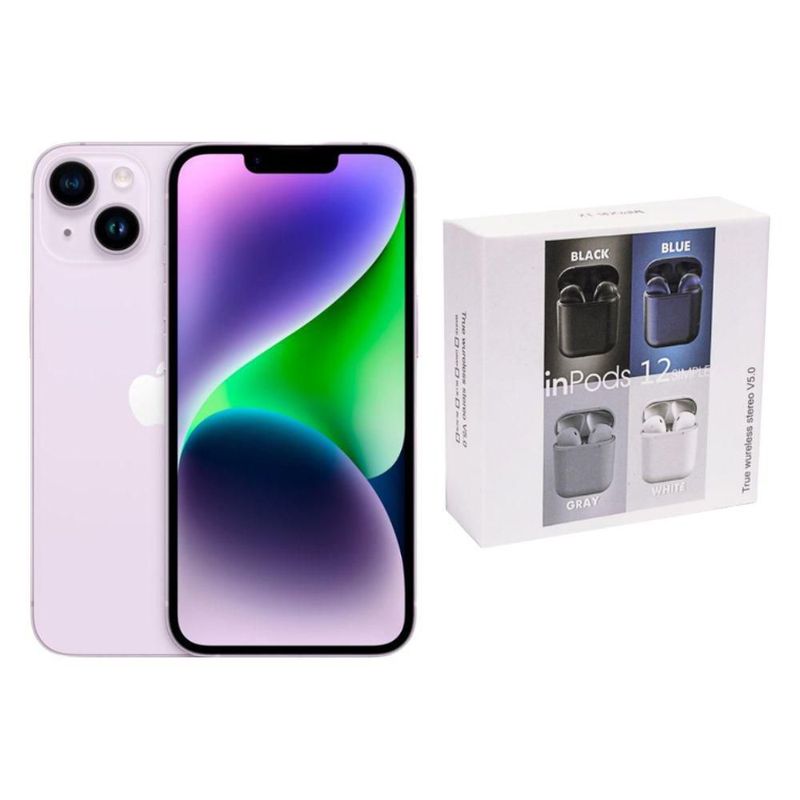 iPhone 14 128GB Lila E-SIM Reacondicionado más Audifonos Genéricos