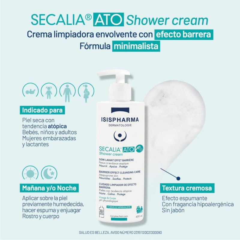 Salud y Equipamiento MédicoHigiene PersonalLimpieza FacialIsispharma Secalia Ato Shower Crema limpiadora para piel atópica 400 ml