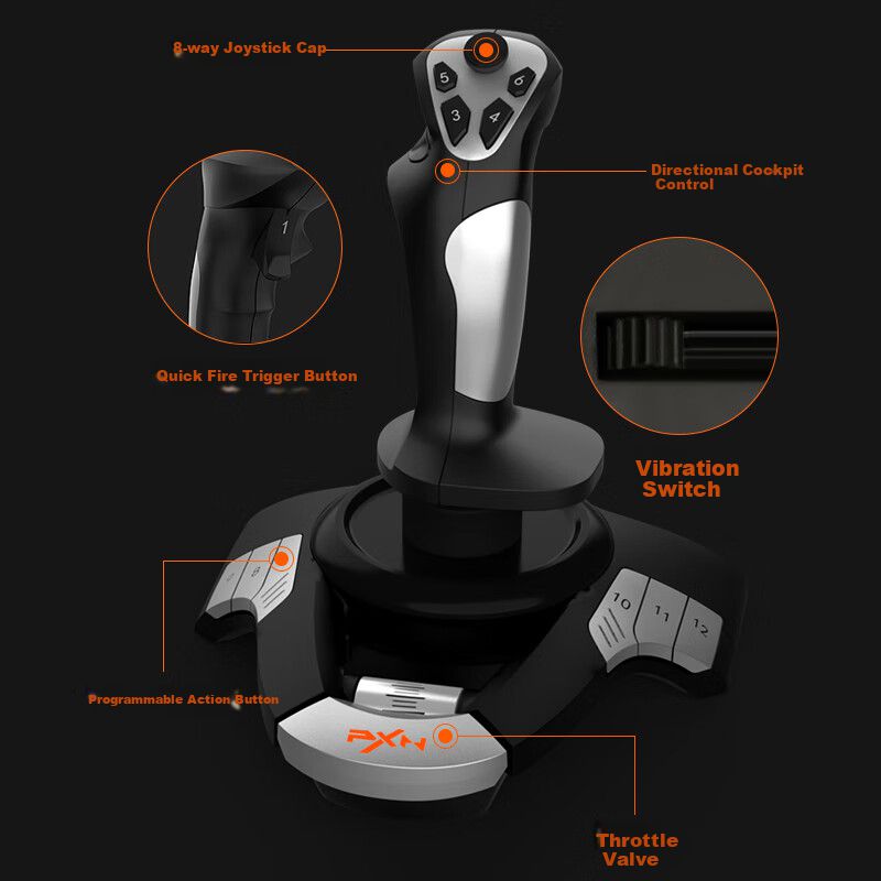 Joystick PXN PXN-F16 12 botones USB para PC negro
