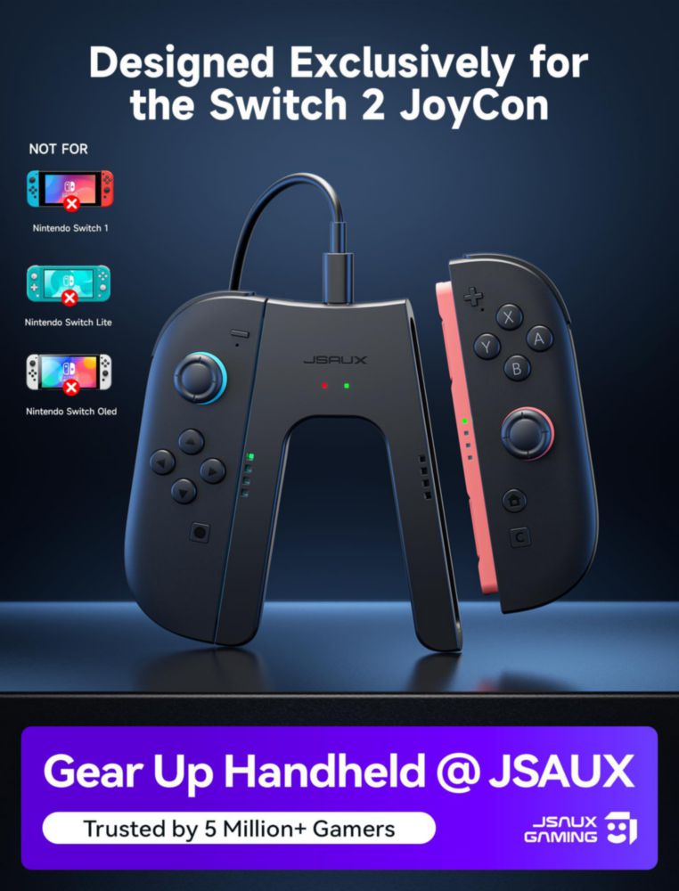 JSAUX Empuñadura de carga para Switch 2 de Nintendo, control con agarre magnético compatible con Joycons de Switch 2, juega mien