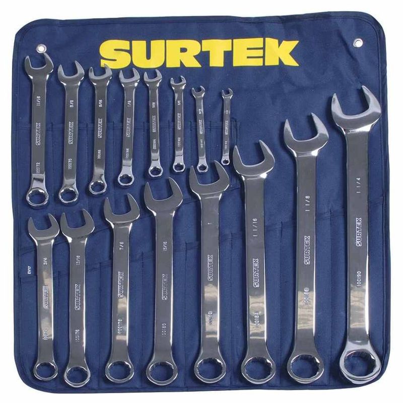 HerramientasManualesLlaves, Dados y AccesoriosJuego 16 Llaves Combinadas Pulido 12 Puntas Pulgadas Surtek