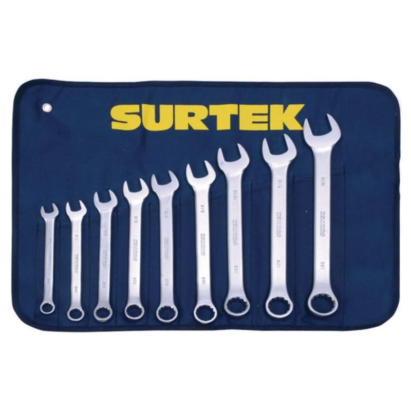Juego 9 Llaves Combinadas Satinadas Puntas Pulgadas Surtek