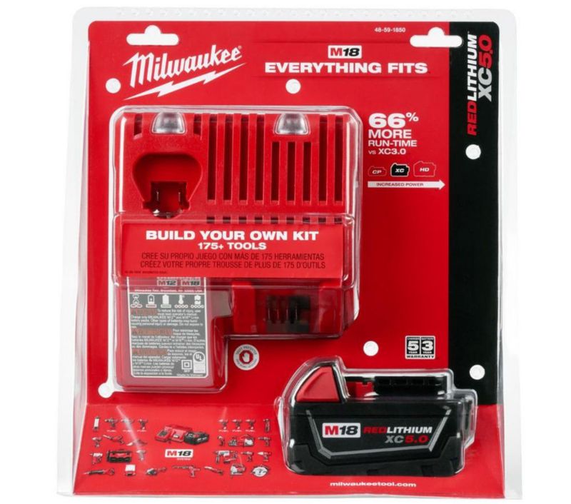 HerramientasAccesorios Para Herramientas EléctricasKits de AccesoriosJuego batería y cargador M18™ REDLITHIUM™ XC5.0 48-59-1850 Milwaukee