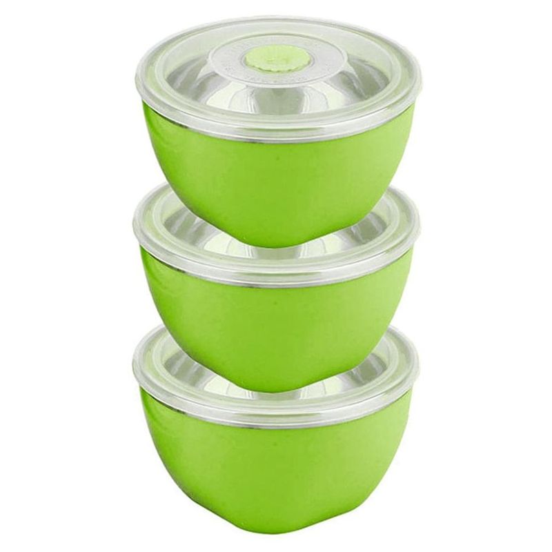 Juego de 3 Ensaladeras Acero Inoxidable con Tapa - Verde