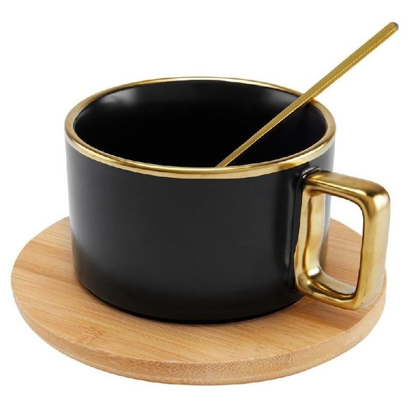 Juego De 4 Tazas De Ceramica Con Base Y Cuchara