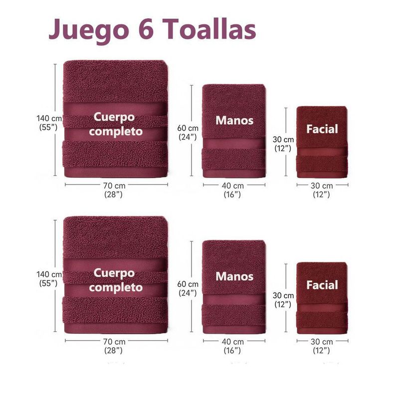 Juego de 6 Toallas de Microfibra Suaves y Absorbentes Negro | Cuerpo, Manos y Facial | Kyuden Home