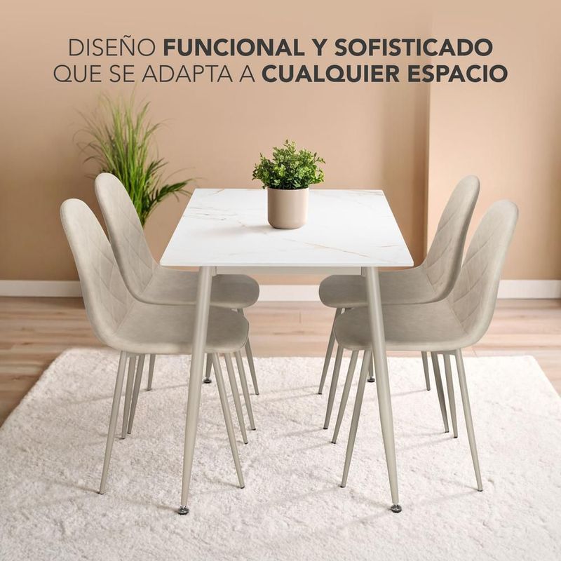 Juego de comedor 4 sillas mesa rectangular vanguardista beige